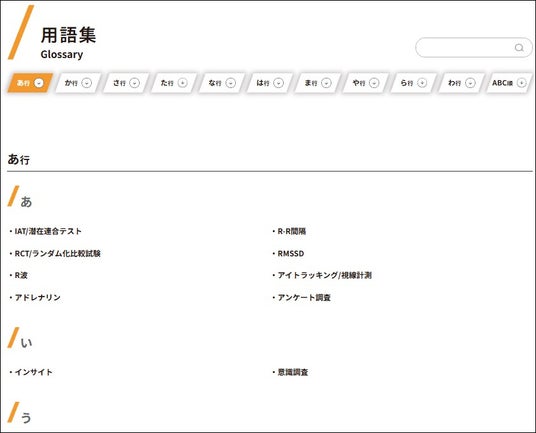 用語の数は、公開時の50単語から152単語に増えました。用語数が増えてきたことに伴い、五十音ごとのページに分けて分類し、より知りたい単語が見つけやすくなりました。アルファベットから始まるものは右端の「ABC順」よりお探しいただけます。