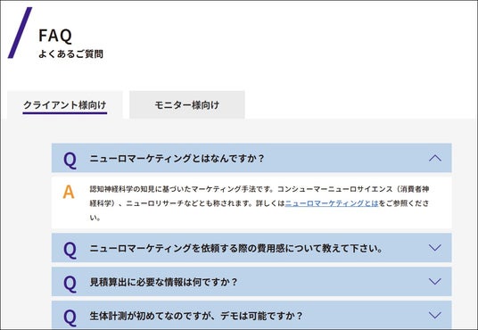 4.ニューロマーケティングに関するFAQ(よくあるご質問)ページを新設しました 。