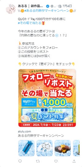 あるるモール公式X(旧Twitter)にて対象ポストを『フォロー&リポスト』で参加完了!