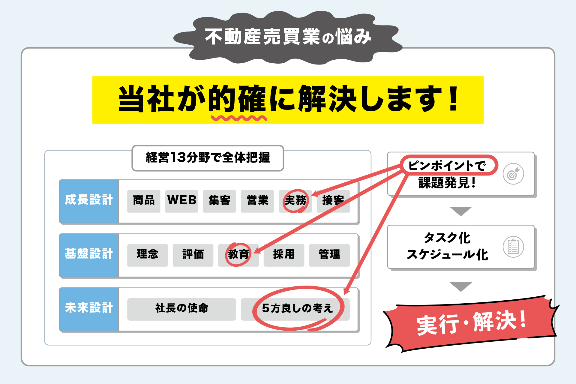 営業判断・価格設定・仕入判断・人材育成といった不動産経営の中核となる意思決定を“仕組み化”し、