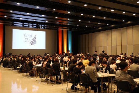 「社内報アワード2023」表彰・交流イベントの様子。当日は約140社の社内広報ご担当者さまが参加