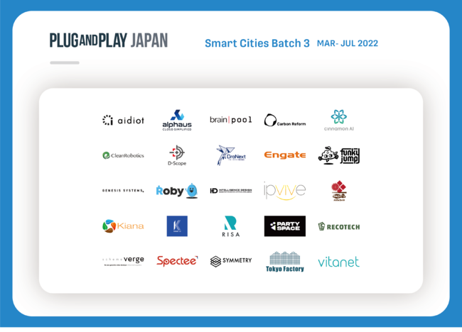 Plug and Play Japanでは、企業パートナーと国内外のスタートアップ企業を結び、新たなイノベーションを創出することを目的に、8つの業界テーマで3ヶ月にわたりプログラムを展開しています。2020年12月にSmart Citiesプログラムを開始以来幅広い協業テーマによる共創支援に取り組んできたアクセラレーターです。
