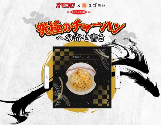 株式会社iUM(東京都港区、代表取締役:藤川 大詩)が提供するオンライン型寄せ書きブック作成サービス「スゴヨセ」は、「ゆるく笑えるコンテンツ」に特化したWebメディア「オモコロ」にて、タイアップで制作したオリジナルの記事コンテンツ「50人のチャーハンを1粒ずつ集めて究極のチャーハンを作る」を公開いたします。また、公開記念として、新規会員登録で製本版が10%OFFになるクーポンを配信するほか、製本版「究極のチャーハンの寄せ書き」が3名様に当たるXキャンペーンも実施いたします。