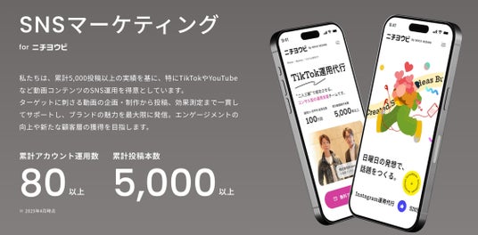 中小企業の採用難や広告費の高騰といった課題に対して、SNSを活用した需要が高まる中、株式会社ノックデザイン(本社:大阪市北区)は、TikTokを活用した法人向けSNS運用代行サービスを刷新し、成果に直結する戦略的SNS運用モデルを体系化。新ブランド「ニチヨウビ」として、その設計思想を反映したサービスページを公開しました。