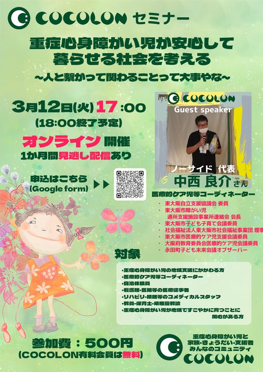 主 催 :重症心身障がい児と家族・きょうだい・支援者みんなのコミュニティ【COCOLON】