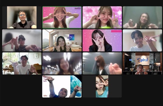 オンラインで振り返り会を行うCGOと富士通社員の様子
