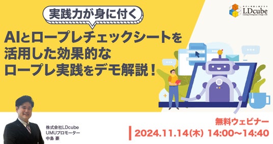 研修のスタイルにとらわれない企業向け人材育成サービスを提供する株式会社LDcube(本社:東京都千代田区、代表取締役社長:新井澄人、以下「当社」)は、WEBサイト上で「ロープレチェックシート」の資料ダウンロード数が増えていることを受け、「ロープレチェックシートとデジタル技術を活用した効果的な社内ロープレの実践法とは」と題してウェビナーの開催を予定しています。
