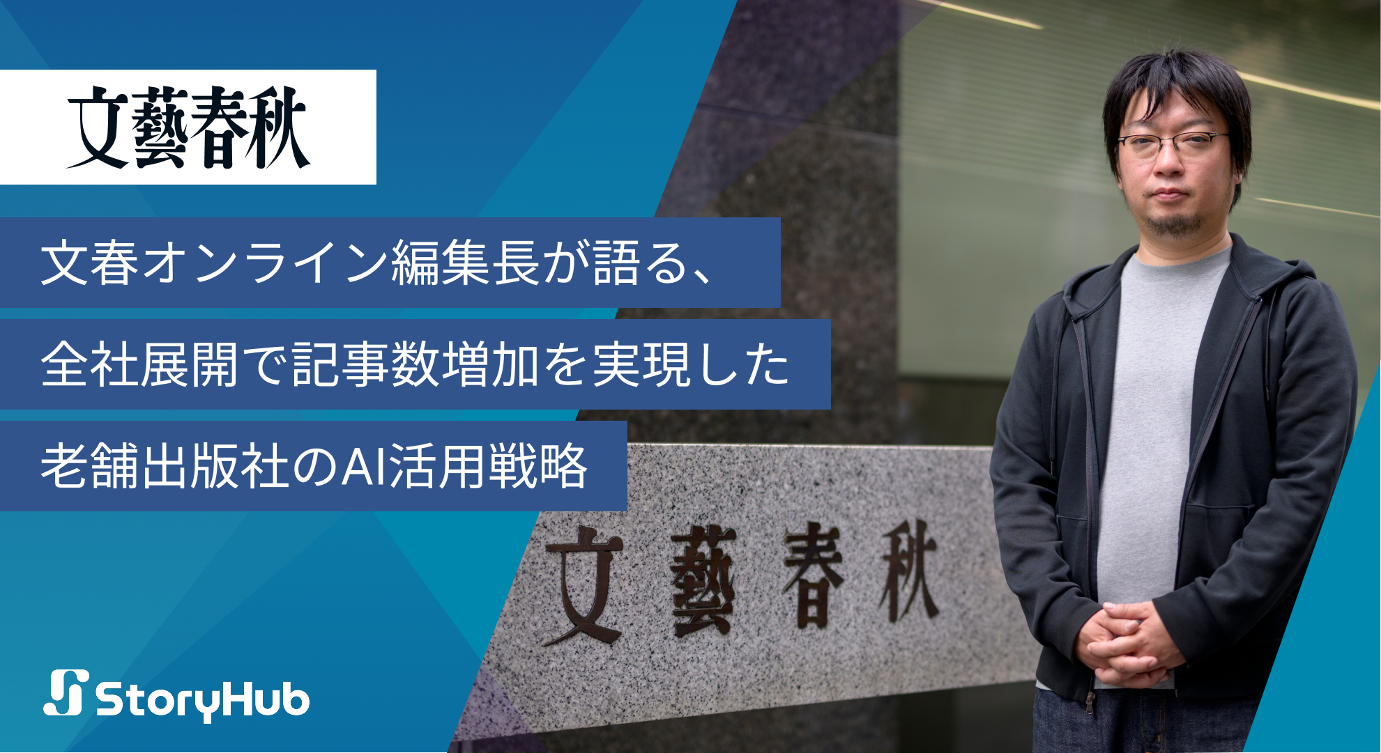StoryHub株式会社(本社:東京都千代田区、代表取締役CEO:田島 将太、以下「当社」)が提供するオールインワン編集アシスタント「StoryHub(ストーリーハブ)」(以下、StoryHub)が、株式会社文藝春秋(本社:東京都千代田区紀尾井町 社長:飯窪成幸)に全社導入されたことをお知らせいたします。記事制作数の増加、売上拡大など、高い効果を実感いただき、全社6グループでの活用が進んでおります。