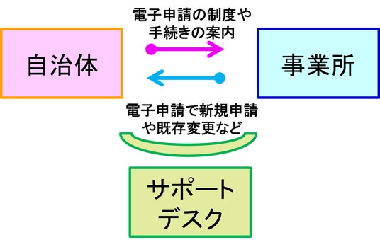 電子申請を導入する自治体と電子申請を利用する事業所向けに、それぞれ