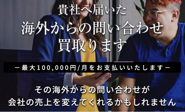 海外からの問い合わせ1件あたり10,000円、月最大100,000円分を買取