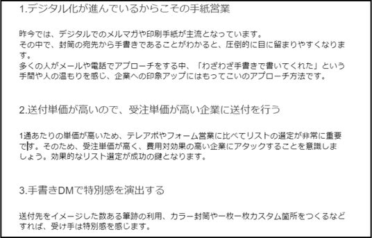今まで手紙営業をしていなかったりなんとなく送っていたりしていた方におすすめの内容となっています。