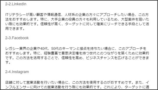 さらに、SEOやYouTubeとは異なり、アルゴリズムの影響を受けにくいため、リード獲得数の予測がしやすく、安定した営業活動が可能となります。