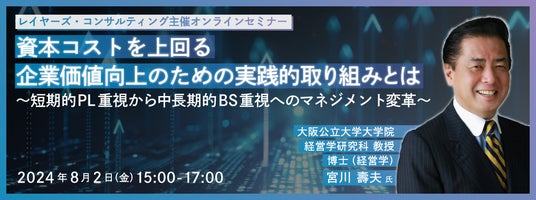 『資本コストを上回る企業価値向上のための実践的取り組みとは ~短期的PL重視から中長期的BS重視へのマネジメント変革~』を2024年8月2日(金)に開催することを発表いたします。
