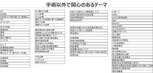 参加したくなるテーマは「手術」が突出。手術以外は「薬物療法」が最も高く、次いで「遺伝子療法」、「AI」などが高い。