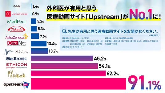 https://upstream.surgeryは医師主導の動画教育を目的として立上がりました。現在、急性期病院の臨床医の約7割が利用する手術動画プラットフォームで、多くのKOLも賛同、学会とのタイアップを通して急速に成長しているプラットフォーム