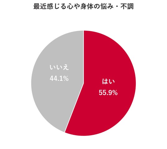 【心や身体の悩み、不調】心や身体の悩み、不調を感じる人は半数以上・心や身体の悩みや不調を感じると回答した人は、半数を超えて55.9%となった。