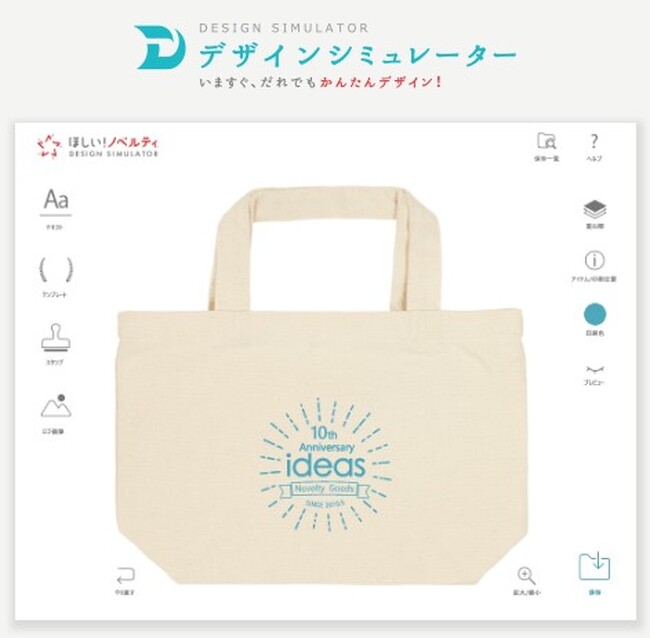 簡単に発注前にデザインが作成できる、デザインソフト不要の機能デザインシミュレーター。周年・創立記念や卒園・卒業記念、キャンペーンなど、使用用途から選べるテンプレート・スタンプを豊富に用意しています。その数、約400種類以上。誰でもプロ級のデザインを作ることが可能です。