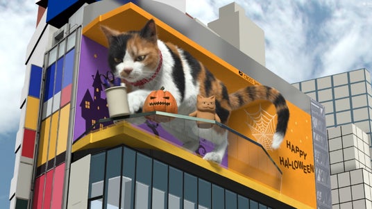 世界を驚かせた3D巨大猫こと『新宿東口の猫』が日々放映される「クロス新宿ビジョン」(JR新宿駅東口徒歩1分、運営:株式会社クロススペース)は、3周年を記念して作られた11本目の完全新作猫映像『ギリギリ編』を、10月16日(水)よりハロウィーンバージョンで放映いたします。