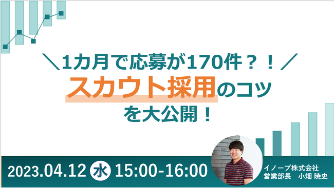 イノープ株式会社は、本日採用人事向けのウェビナー『【知らないと失敗する採用ノウハウ】1ヶ月で応募が170件?!スカウト採用のコツを大公開!』を開催いたします。オンライン開催で参加費無料、当日の参加も可能です。