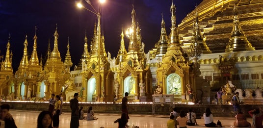 平日の夜のシェダゴンパゴダにて。人々はろうそくを灯し、静かにお祈りをします。満月の祭り日は、ここにたくさんの人たちが押し寄せます。