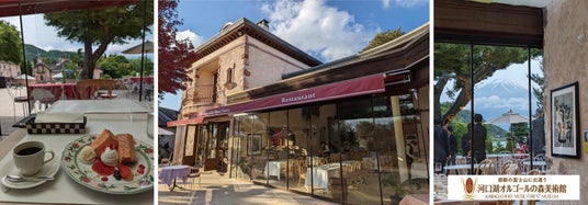 河口湖音楽と森の美術館のレストランでは目の前に大きく広がる富士山を望みながら、ゆっくりコーヒーを楽しめます。秋にはテラス席もおすすめです。いつもたくさんの無料入場券を頂戴し、同美術館のレストランのコーヒーを焙煎している流山の障がい者自立支援施設「いろいろや・ハーモニー」の利用者のみなさんが家族と一緒にプライベートでこっそり訪問させていただき、美味しいブレンドコーヒーを楽しんでいます。
