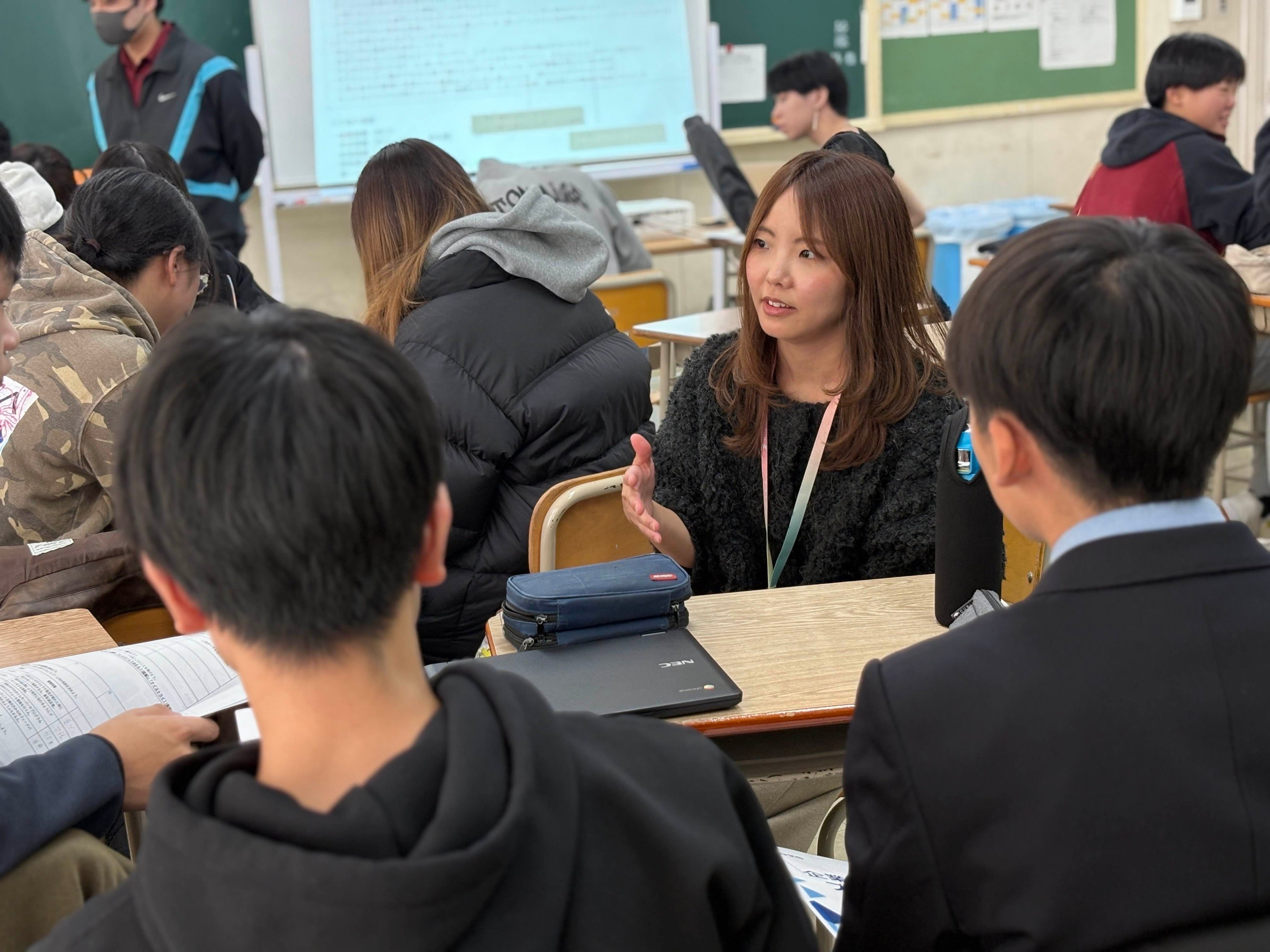 生徒の声に耳を傾け、一緒に探究をする様子。