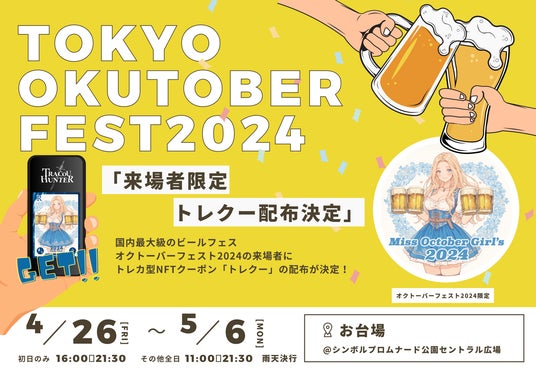 株式会社ゼクサバース(本社: 東京都千代田区、代表取締役: 上瀧良平)は、この度、2024年4月26日から開催の国内最大級のビールフェス「オクトーバーフェストinお台場2024 ~SPRING~」にて、スマートフォン向けNFT宝探しアプリ「トレクーハンター(TRACOU HUNTER)」を通じて、トレカ型NFTクーポン「トレクー」の配布を行うことが決定しました。