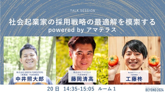 社会起業家の強みは社会性の高いVISIONにより、ロイヤリティの高いコミュニティやステークホルダーを作れること。それらを採用に活かせればより良質な経営を行うことができますが、社会起業家の採用戦略のノウハウは未だ市場に蓄積していないのが現状です。本トークでは多くの社会起業家が活用する採用スカウトサービス『アマテラス』を運営する株式会社アマテラス 代表取締役 藤岡様と社会起業家2名とのディスカッションを通じて、社会起業家の採用戦略の最適解を模索します。