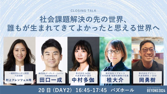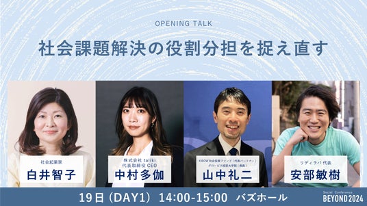 社会課題解決のプレイヤー支援を行う株式会社taliki(本社:京都府京都市、代表取締役:中村多伽、以下taliki) は、国内最大級の社会起業家向けソーシャルカンファレンス「BEYOND2024」の開催にあたり、計8トークセッションの詳細と登壇ゲスト・ピッチ審査員の総勢34名を公開いたしました。