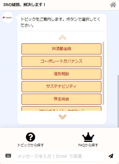 当社のノウハウを凝縮した「IRコーチ」が、24時間365日いつでもご質問にお答えします。ご質問内容に応じて、プロによる有人チャットに切り替えることも可能です。