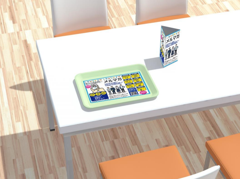 ■大学内広告 商品ラインナップ【1】学食トレイ広告・食事をするたびに目にするため、視認率・刷り込み効果の高い媒体