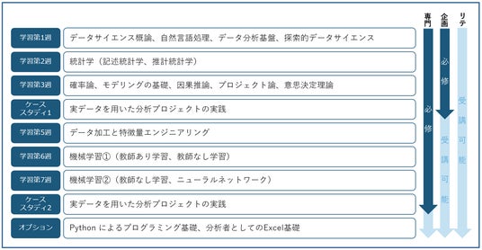 データサイエンティストに必要なスキルを体系的に学習していただきました。