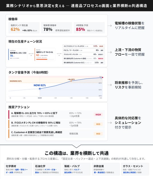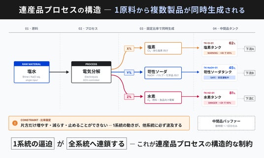 この構造的な不足は、連産品プロセスに特有のものです。既存のERPでも、DCSベンダーのAPCでも、BIダッシュボードでも、汎用のデジタルツインでも届かなかった領域──