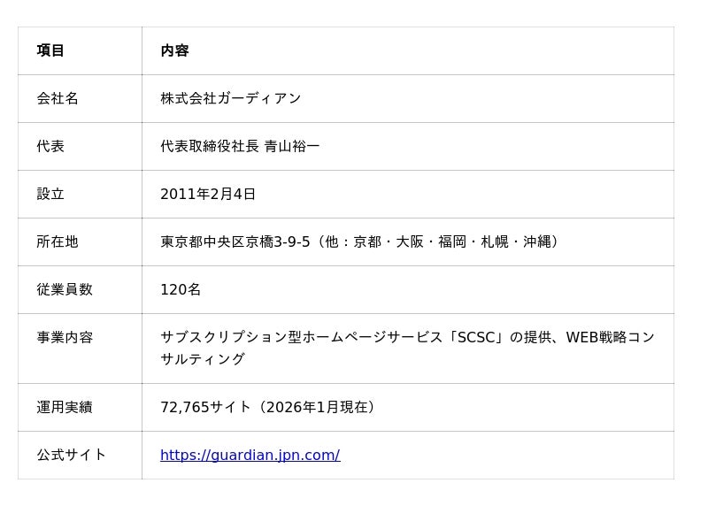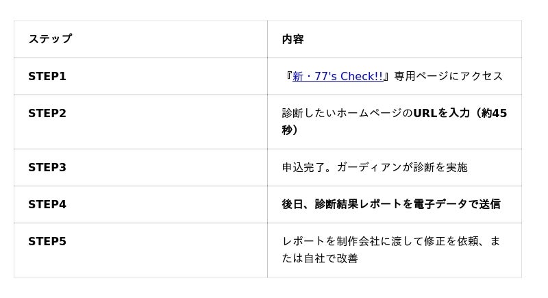 株式会社ガーディアン(本社:東京都中央区京橋3-9-5/代表取締役社長:青山裕一)は、日本全国の中小企業経営者・個人事業主を対象に、無料ホームページ診断サービス『