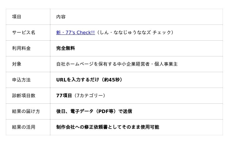 新・77's Check!!』は、ホームページの「勝敗」を決定づける7つの領域を徹底検証します。