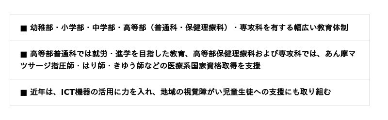 視覚障がい教育のパイオニアとして、子どもたちが次の時代を幸せに生きていけるよう、創意工夫に富んだ教育活動を展開しています。