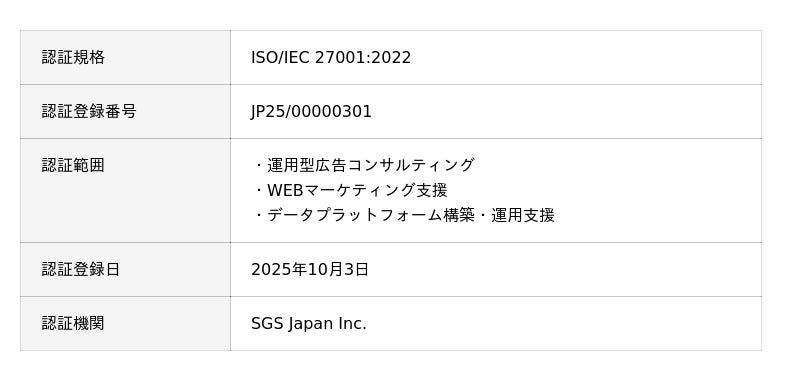 2025年10月、運用型広告の運用代行・コンサルティング事業を展開するアナグラム株式会社(本社:東京都渋谷区、代表取締役社長:小山 純弥)は、情報セキュリティマネジメントシステム(ISMS)の国際規格である「ISO/IEC 27001」の認証を取得いたしました。