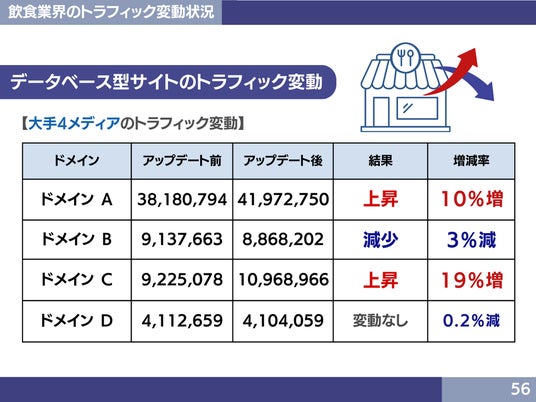 アップデートの特徴や飲食業界のトラフィックの変動などのSEO情報にも注目です。