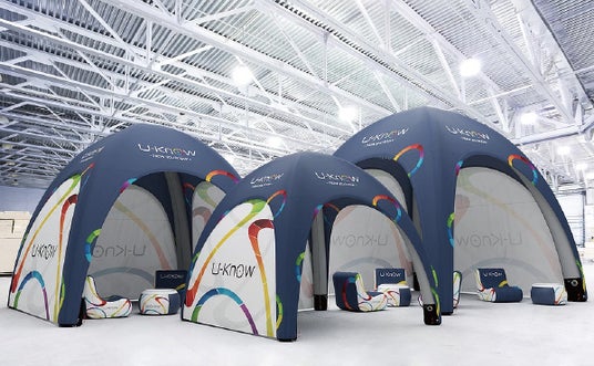 強度の高い400デニールのポリエステル製で、撥水・UVカット仕様。春の日差し対策や風や雨から参加者を守ることができます。屋内併用で、空気を入れてから約1ヶ月現状を保つことが可能です。