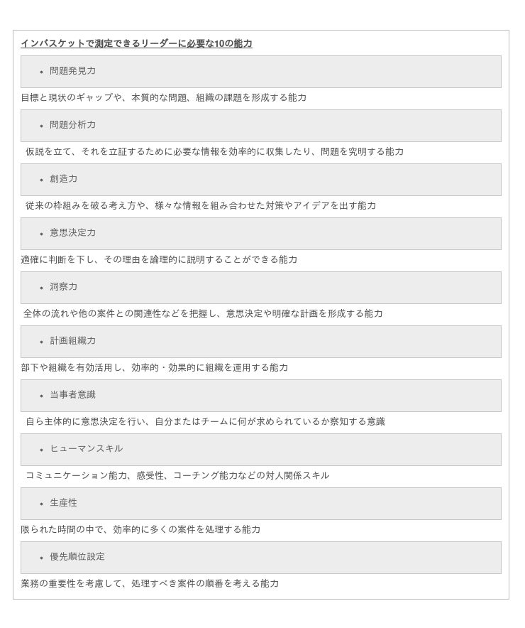インバスケット法を用いたヒューマンアセスメントに関する情報、並びにサービスの提供