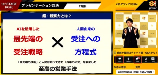 日本最大級の営業大会「第8回S1グランプリ2024」が、11月1日と2日の二日間にわたって開催され、約2,000名の視聴申込を集め、大盛況のうちに幕を閉じました。また、X(旧Twitter)では「#S1グランプリ2024」が大会として初めてトレンド入りし、営業のみならずマーケティングや人事部門からも多くの応援をいただきました。激戦の末、株式会社Repro Accompany / 株式会社スポンサーズブースト代表取締役の西里将志さんが見事に優勝を飾りました。