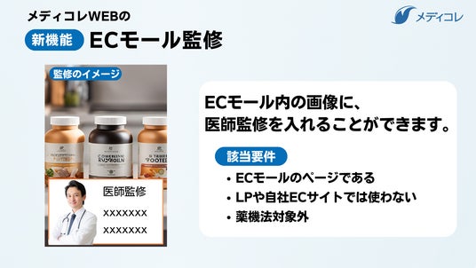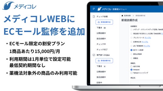 メディコレWEB」にECモール監修プランを追加したことをお知らせします。
