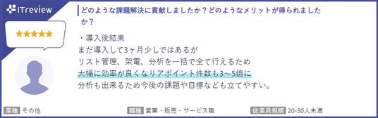 クラウド型アウトバウンド専用コールシステムです。発信リスト管理、ステータス・見込み管理、自動分析機能、プレディクティブコール(多回線同時発信機能)など、アポイントの獲得効率を底上げするために必要な機能が搭載されています。