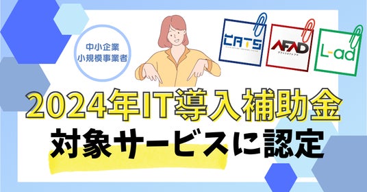 CATS株式会社(本社:東京都新宿区、代表取締役社長:松本 勇)が提供する「CATS」「AFAD」「L-ad」が、いずれもIT導入補助金2024の申請対象サービスとして認定されました。2024年IT導入補助金(令和5年度補正サービス等生産性向上IT導入支援事業)は、中小企業・小規模事業者がITツール導入にご活用いただける補助金で、導入事業者の生産性や経営力を向上させることを目的としています。