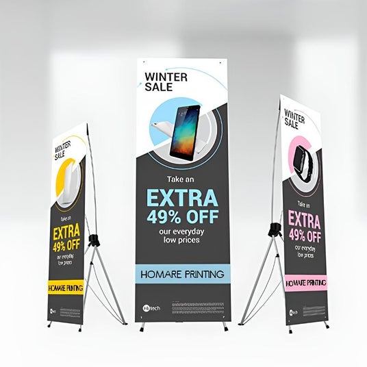 M、L、XLの3サイズ展開で店舗用看板、展示会、イベントブース、オフィス、銀行店内などさまざまな場所や用途に合わせてディスプレイが可能です。