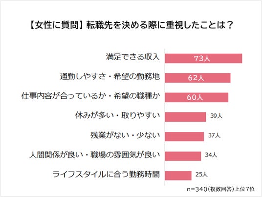 女性が転職先を決める際に重視したことは「満足できる収入」