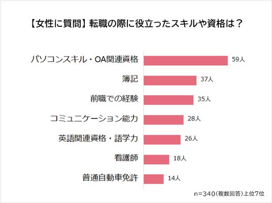 女性が転職する際に役立ったスキル・資格は「パソコンスキル・OA関連資格」