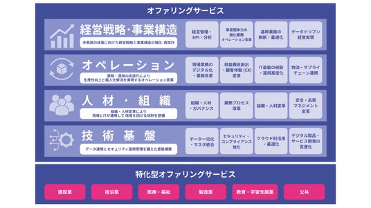 また、本オファリングは当社の知見・実績を「ベストプラクティス」として整理したもので、フェーズ1では13領域を先行展開。フェーズ2では対象領域を順次拡大し、さらなる価値提供を目指します。
