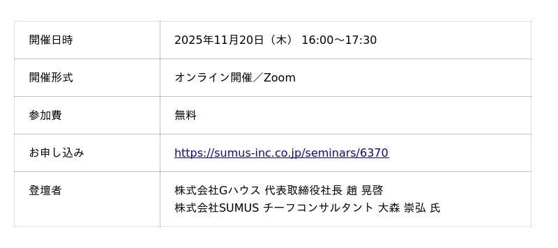 https://sumus-inc.co.jp/seminars/6370《株式会社Gハウス 公式HP》