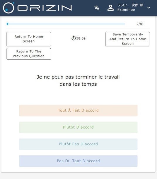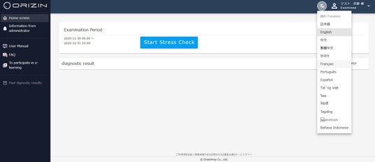 追加費用なしでご利用いただけます。受検から個人結果の確認まで、すべて受検者本人が選択した言語で対応可能です(※一部共通メニューは日本語または英語となります)。